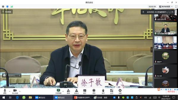 为深入学习贯彻党的二十大精神,10月31日,马克思主义学院思想道德与法治教研室党支部与省教育厅社政处党支部,以视频连线的方式开展联学共建活动。省委教育工委副书记徐子敏出席联学共建活动。省教育厅机关党委副书记刘海宁、社政处处长赵玉蓉,马克思主义学院党委书记徐川、院长王智及双方党员参加活动。赵玉蓉主持会议。
