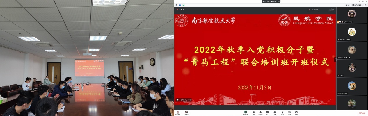 11月3日,民航学院召开2022年秋季入党积极分子暨“青马工程”联合培训开班仪式,并邀请无人机研究院党委副书记、副院长杨波作专题党课宣讲。根据学校疫情防控要求,学院党委副书记王艳、辅导员付昊、高琦和本期117位入党积极分子以线上、线下相结合的方式参加开班仪式,活动由学院组织员侯美丽主持。