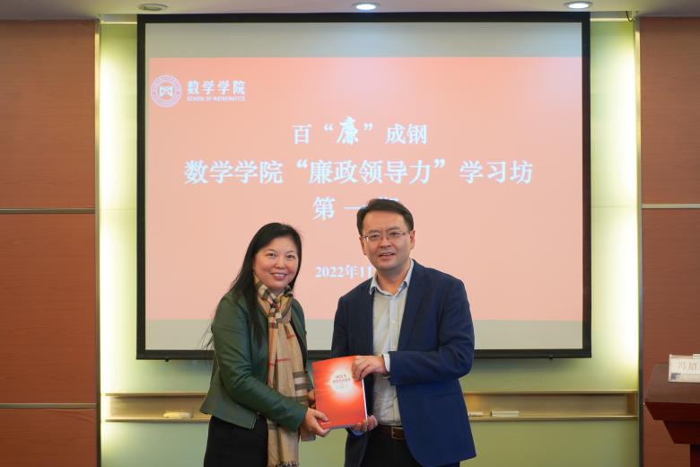 最后,冯绍红将其著作《研究生课程思政教育》赠与数学学院,希望数学学院站在新起点,不断在理论学习和实践中锤炼领导力,在科研、教学和育人方面积蓄力量、砥砺前行。