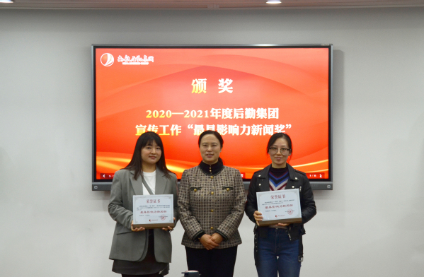 会上,俞广波首先传达了学校2022年宣传工作专题会议精神,并作了2020-2021年度集团宣传工作报告。侯贵菊宣读《关于表彰2020-2021年度后勤集团宣传工作“先进单位”“先进个人”“最具影响力新闻奖”的决定》。集团领导分别为获奖单位和个人颁奖。