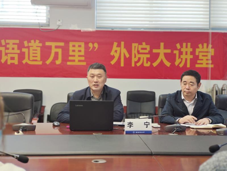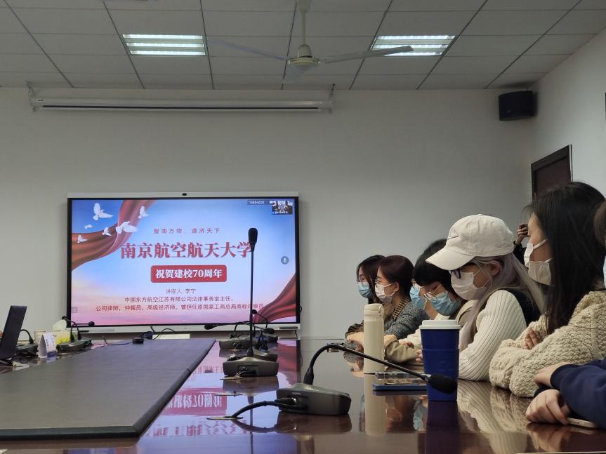 11月8日下午,中国东方航空江苏有限公司法律事务室主任李宁做客外国语学院“外学百家 语道万里”大讲堂,为学生们带来了 “涉外法制人才 职业规划”讲座。讲座由外国语学院副院长徐以中主持,学院团委书记李萍及本科生线上线下聆听了讲座。