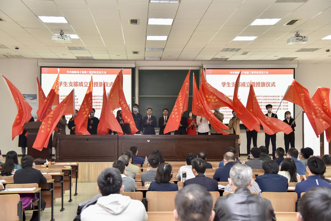大会计监票期间,学院党委副书记雷蕾主持了学生各党支部成立暨授旗仪式,季海群及学院常务副院长潘时龙分别向所有16个学生纵向党支部授旗。季海群介绍到,在前期个别纵向党支部试点的基础上,在学科赋能发展的新形势下,学院党委决定将所有研究生调整为纵向党支部,新组建成立的纵向研究生党支部建在学科上,将支部建设与科研、专业学习紧密结合,较好地解决了党支部规模过大、沟通不畅、支部活动开展难等问题。希望新成立的纵向党支部更好发挥“党建引领学科、学科赋能党建”的作用,为学院党的建设提供有力支撑。会议还观看了第二十届中央政治局常委同中外记者见面会、习近平在瞻仰延安革命纪念地时重要讲话的实况录像。