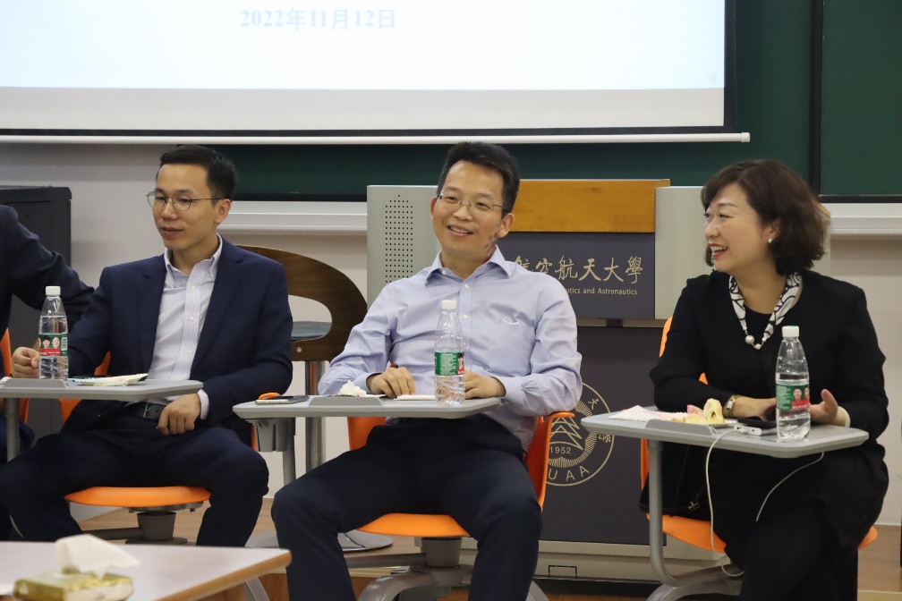 贡海俊针对学生科技创新提出建议,希望同学们能够夯实基础,在感兴趣的科创方向上埋头探索,同时在实践中为校区的科创空间建设提出宝贵意见。王静结合近期公开答辩周优秀个人以及集体的先进事迹,鼓励同学们向优秀看齐,立足脚下、放眼远方,在全面发展和个性发展同向发力。