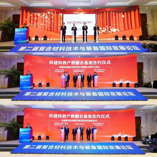 开幕式最后,举行了江苏省先进复合材料技术与装备制造业创新中心揭牌仪式及共建科教产教融合基地签约仪式。
