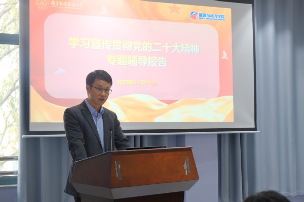 11月11日下午,能源与动力学院在明故宫校区A10-619报告厅举行学习贯彻党的二十大精神专题辅导报告会。学院党委理论学习中心组成员、教工党支部书记、部分师生支部党员、全体机关人员共同参加。会议由院党委书记王中叶主持。