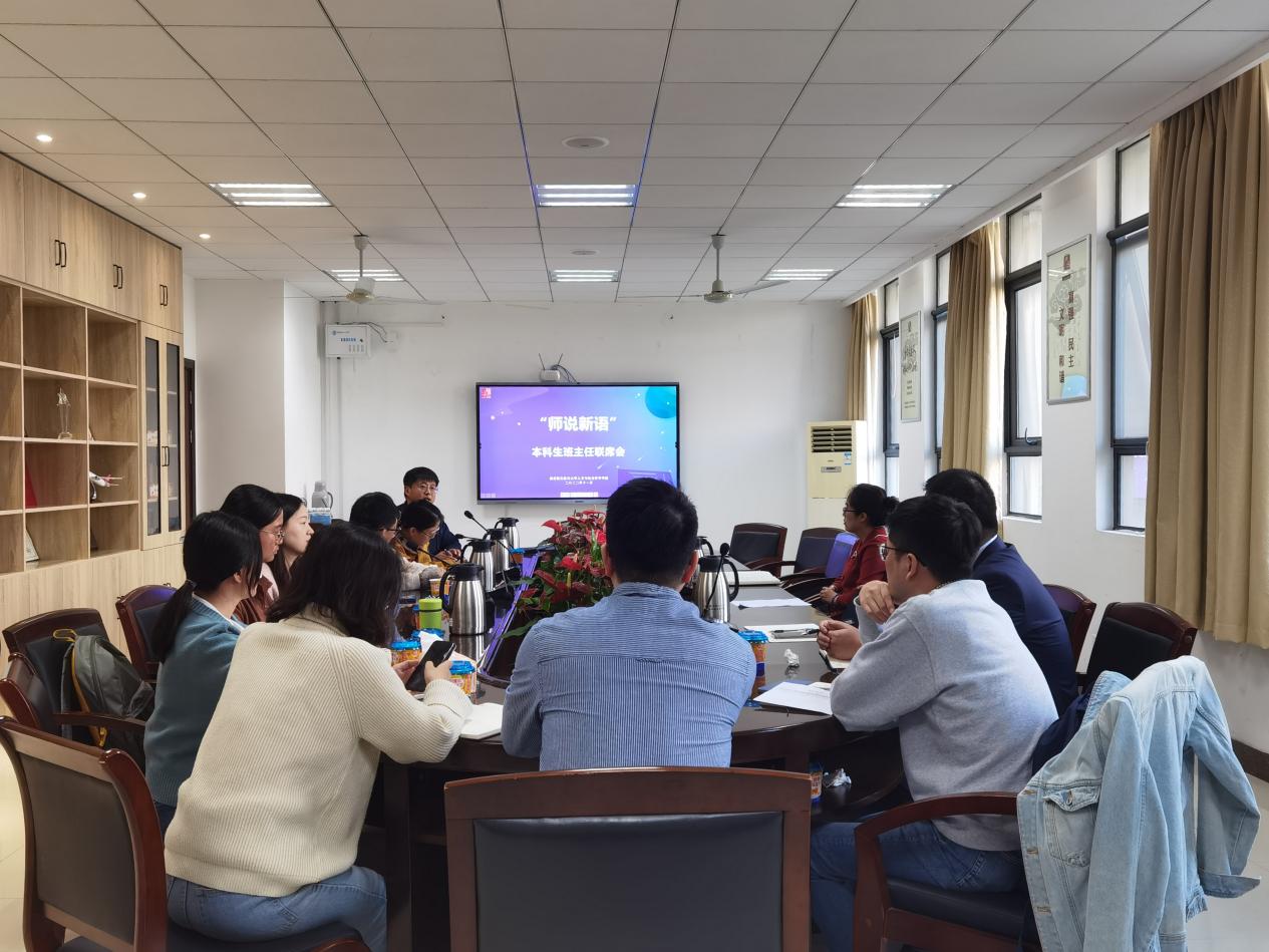 为进一步加强辅导员与本科生班主任之间的沟通交流,强化学生教育管理服务工作的协同配合,11月10日中午,人文与社会科学学院召开了本科生班主任工作交流会。院党委副书记刘思辰、副院长施向峰,本科生辅导员孙长胜、聂小芳,以及各班本科生班主任参加了此次会议。