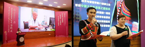 在今年校长特别嘉奖公开答辩现场,知名教授、党政领导、任课教师、班主任、科创项目指导教师、企业代表、媒体代表、志愿活动受助单位代表等作为推荐人参与到公开答辩活动中。他们从不同角度对候选同学取得的优异成绩表示肯定、进行推荐,并激励同学们奋发进取、再创佳绩。