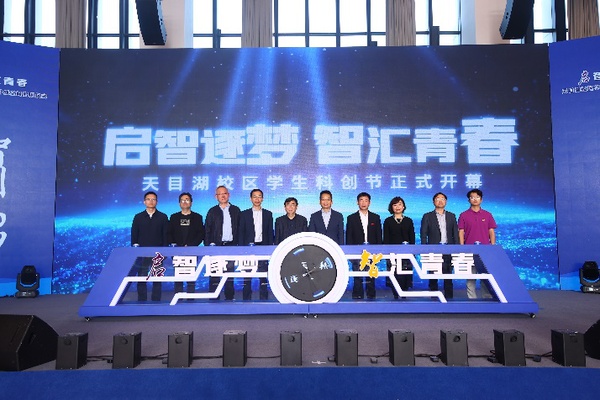 随后,在领导、嘉宾和师生代表的共同见证下,领导和师生代表共同按下启动按钮,首届“启智逐梦,智汇青春”天目湖校区学生科创节正式拉开帷幕。