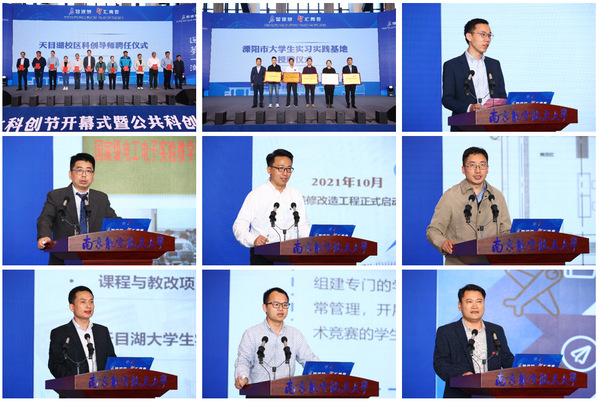 在开幕式上,学校举行了天目湖校区科创导师聘任仪式、溧阳市大学生实习实践基地授牌仪式,公共实验教学部和驻区学院做了关于公共科创空间建设情况的交流发言和经验分享,各学院学生代表推介了本学院特色科创赛事。