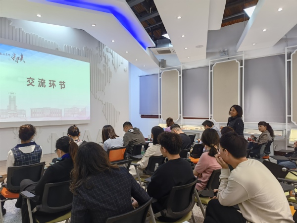 分享会之后开展了互动交流环节,针对校史、讲解等方面的疑惑,周老师耐心细致地一一解答。现场教师全情投入,认真地记录着心得体会,积极参与互动。