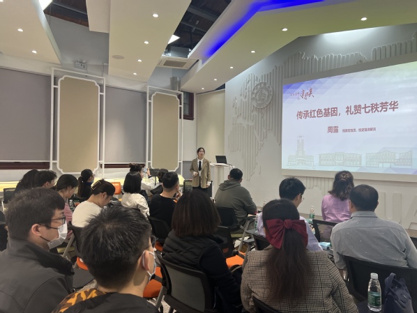 周露以“传承红色基因 礼赞七秩芳华”为题,带领老师们走进校史馆,基于校史回顾了一代代师生为学校改革发展而艰苦奋斗的点滴历程,并从人才培养、科学研究、社会服务等方面介绍了南航自建校以来所取得的瞩目成就。她从自身经历出发,以自身8年的档案管理工作经验,以及接待50余场校史馆参观的经验,分享了一个非科班讲解员的成长之路。
