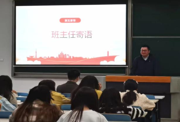 班主任寄语环节,孙清白带领大家回顾了过往一年中学习生活的片段,勉励大家在深入学习互动中收获成长与感悟,表达了对同学们德智体美劳全面发展和共同建设团结班级的美好期许。熊敬鼓励大家将新时代青年的担当与党的使命结合,将自身所学专长专业与社会发展进程结合。最后,他鼓励师生加强交流,共同塑造良好班级氛围。