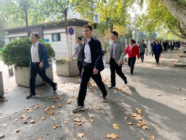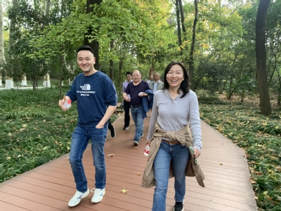 秋日暖阳下,健身正当时。教职工们迈着矫健的步伐,沿中山门大街,环绕中山陵燕雀湖、前湖公园,途经琵琶湖公园、南京城墙前湖处豁口,摆动双臂,阔步前行。老师们呼吸着清新的空气,感受着自然风光,七八人成团、谈四五小事,一路欢声笑语,尽情享受愉悦的时光。