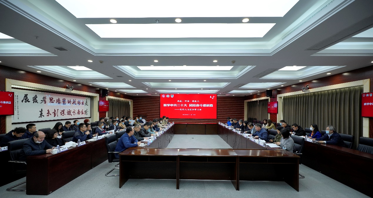 11月16日,我校与河海大学、南京医科大学党外人士联合举行座谈会,专题学习中共二十大精神。我校党委常委、组织部部长、统战部部长李遥,南京医科大学党委常委、组织部部长、统战部部长邵海亚,河海大学政策研究室主任、党办副主任曹翀,以及三所高校各民主党派、无党派人士和统战团体代表参加会议。会议由李遥主持。