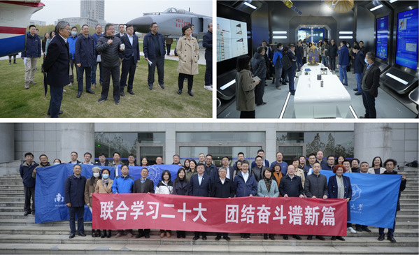 会后进行了参观交流。农工党南航支部主委、无人机研究院副总工程师黄大庆带领党外人士走近“御风园”航空航天教育教学实践基地,现场讲述了新中国自行生产的第一型飞机初教5、大型水陆两用飞机AG600静力试验机、长征四号运载火箭、大型无人靶机长空一号等19台航空航天器背后的动人故事,党外人士深深感受到国防文化以及南航的“红色基因”和“蓝色梦想”。九三学社社员、航天学院副院长王寅带领大家参观讲解航天教育教学基地,零距离感受中国航天的发展历程以及航天“星、箭、弹、船、器”的家族型谱及内部结构,沉浸式感受“两弹一星”精神、载人航天精神、探月精神、北斗精神等中国航天精神。