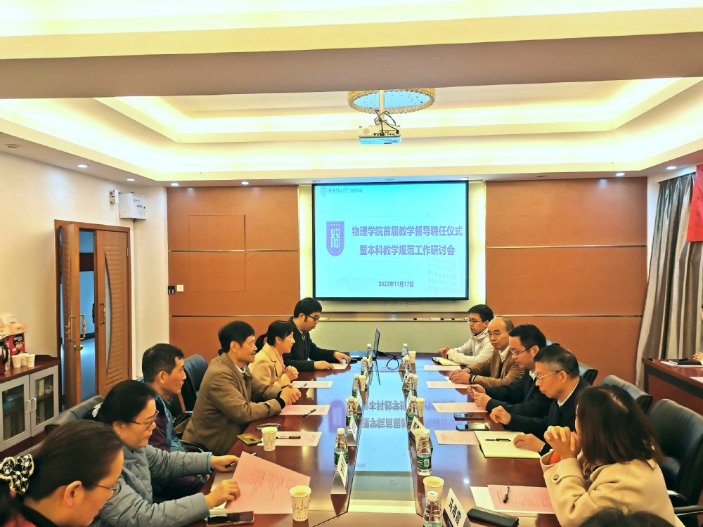 11月17日上午,物理学院首届教学督导聘任仪式暨本科教学规范工作研讨会顺利举办。校教师发展与教学评估中心主任朱建军、校督导组陈建平、物理学院院长刘友文、副院长李晋斌、物理学院督导组成员及各系中心主任等参加会议。会议由物理学院副院长李晋斌主持。