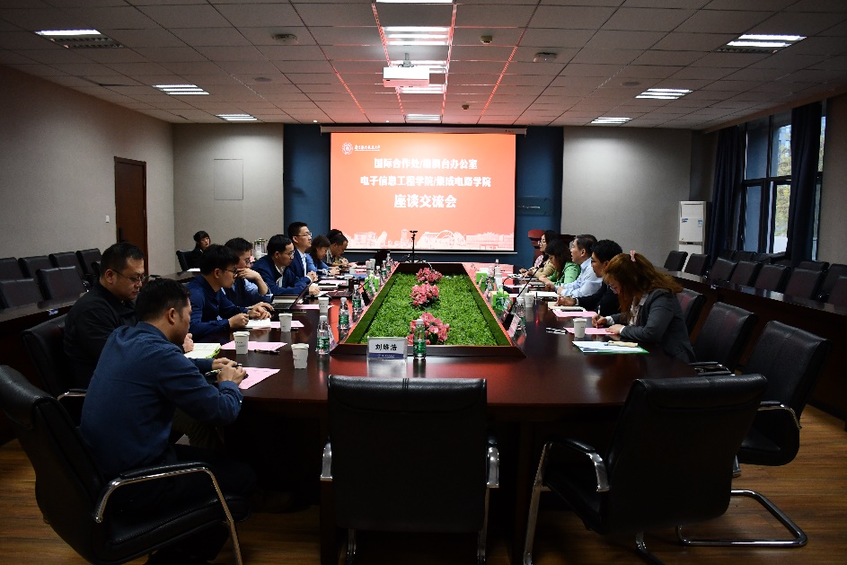 2022年11月11日下午,校国际合作处/港澳台办公室张卓处长、张国权副处长、沈敏副处长等一行到电子信息工程学院/集成电路学院调研座谈。学院党委书记季海群、常务副院长潘时龙、副院长刘伟强、张小飞、院长助理黎宁等出席会议。
