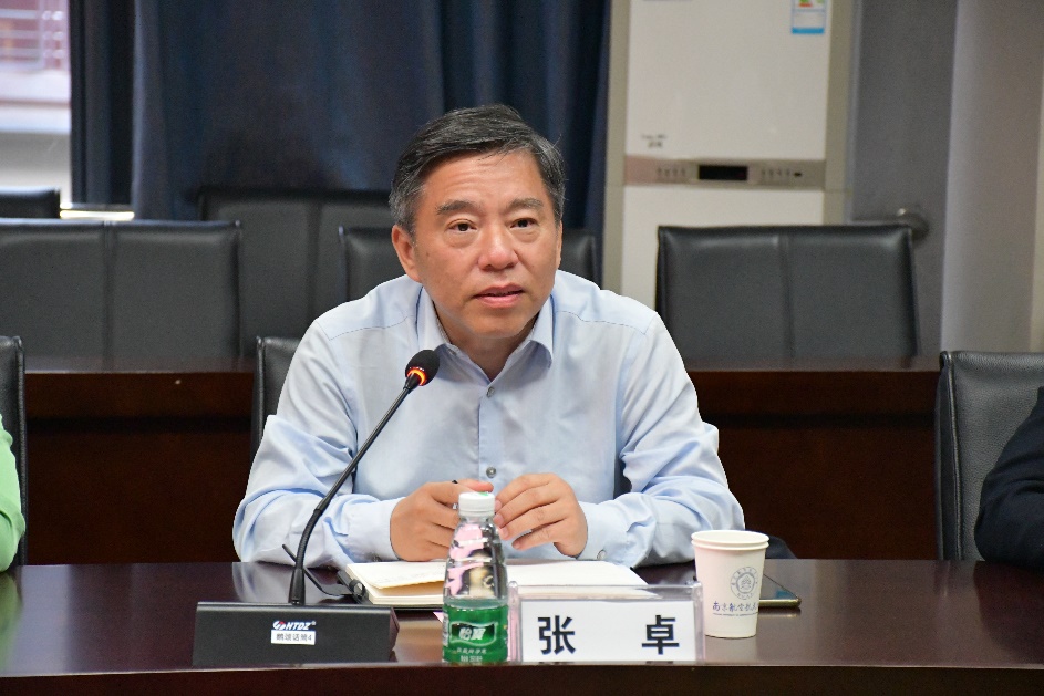 张卓处长介绍了调研背景。他首先肯定了学院对于南航-布大创新人才推进中心和引智基地建设的突出贡献。之后介绍了国合未来工作设想和计划,希望学院一同助力,积极申报和推进核心国际合作项目,联通国际,助力师生、学科及学校三个层次的发展,并按照“一四一二”战略(即一个网络,四个平台,一支队伍,两个系统)进行落实。