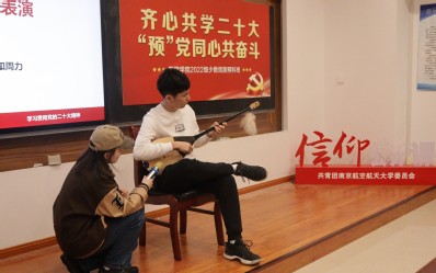 玛依拉结合预科同学学习生活,以“民族共荣,‘预’律金科”为主题领学党的二十大报告。她以民族团结和铸牢中华民族共同体意识为出发点,向同学们详细介绍了党的民族政策、学校民族团结的特色活动,希望同学们在预科班丰富的学习生活中、在南航的大家庭里团结一心,共同进步。