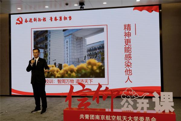 为深入学习贯彻二十大精神,强化对青年学生的价值引导和人生指导,深化青年学生对“请党放心,强国有我”的认识和实践,展现南航学子积极向上、奋发有为的精神面貌,11月17日晚,“奋进新征程,青春勇担当”信仰公开课暨主题演讲比赛在天目湖校区巡天楼一楼报告厅举办。
