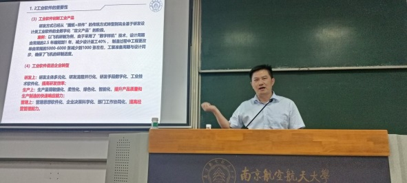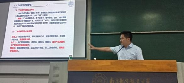 第四讲和第五讲,经济与管理学院副院长、灰色系统研究所博士生导师谢乃明教授报告的题目是《具有二维空间特征的航空复材制造组批生产调度排程研究》和《工业软件分类及细分市场格局》。谢乃明教授讲解了工业软件,指出目前的研发方式已由“图纸+样件”的传统方式转型到完全基于研发设计类工业软件的全数字化“定义产品”,并介绍了自己帮助企业进行管理流程改进的实例,让同学们了解到了工业企业目前最新情况。