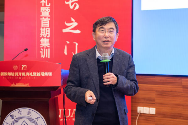 单忠德代表郑永安书记和学校党政领导班子向新教工加入南航表示热烈欢迎,并结合研读党的二十大报告心得体会,从三个方面作《坚定教育自信,强化育人铸器,奋力成为新时代“四有”好教师》的主题报告。一要把握历史方位,勇立时代大潮,在胸怀国之大者中锚定职业发展坐标;二要传承红色基因,弘扬优良传统,在汲取精神伟力中把握职业方向;三要牢记育人初心,矢志铸造重器,在坚持垂先示范中书写职业发展篇章。