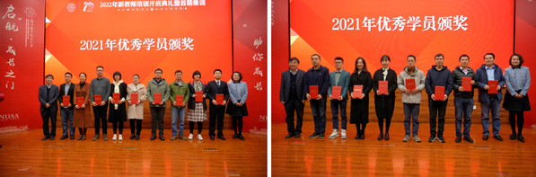 施大宁与王晖为20位2021年校本培训优秀学员颁发了证书。单忠德为10位“青椒导师”颁发了聘书。