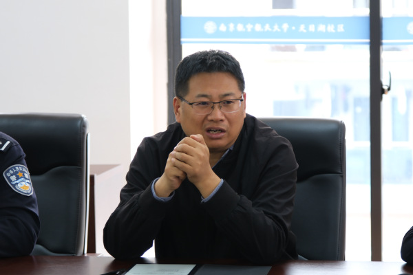 11月23日上午,天目湖校区召开反诈专题安全工作会议。天目湖校区党工委副书记、学生处副处长贡海俊、溧阳市公安局古县街道办派出所副所长卞力、保卫处驻天目湖校区办公室主任黄耀龙、校区学工办主任张秀宝、团工委书记肖杰及驻区学院全体辅导员参加会议。