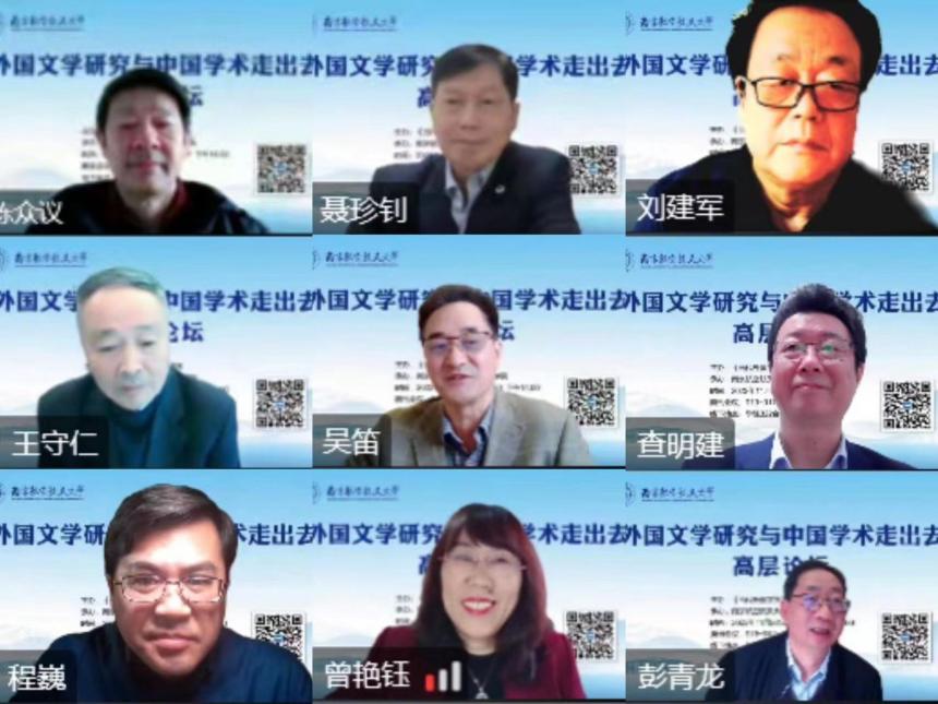 11月22日,“外国文学研究与中国学术走出去”高层论坛顺利召开。本次论坛由《当代外国文学》编辑部主办,南京航空航天大学外国语学院承办。来自中国社会科学院、北京外国语大学、上海外国语大学、南京大学、浙江大学、中国人民大学、上海交通大学等近10所高校的专家学者,共计三百余人以线上线下结合的模式参加了本次论坛。