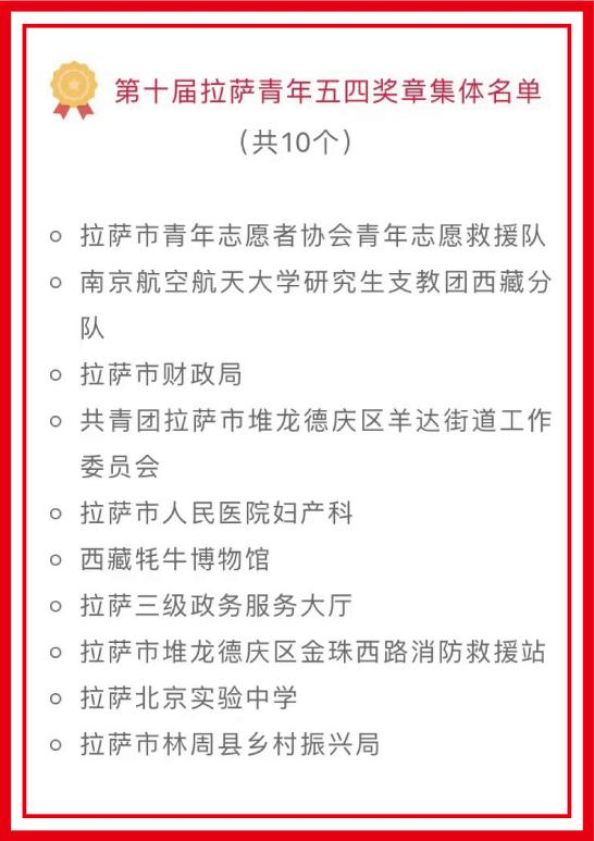 据悉,“拉萨青年五四奖章”是团市委授予拉萨市青年的最高荣誉。此次评选活动旨在集中展示新时代拉萨青年听党指挥、矢志奋斗的精神品格和价值追求,激励和引领全市各族青年踔厉奋发、砥砺笃行,在建设社会主义现代化新拉萨伟大征程中建功立业、彰显青春价值,充分发挥生力军和突击队作用。