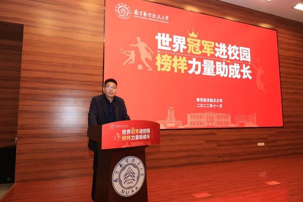 11月23日上午,“世界冠军进校园,榜样力量助成长”主题活动在我校将军路校区顺利举办。此次活动由“世界冠军进校园”参观航空航天教育教学实践基地、“榜样力量助成长”思政课和“世界冠军面对面”三个环节组成。江苏省体育局训练中心主任马兆森、副主任石静,副校长施大宁,党委常委、宣传部/教师工作部部长王晖,近50位世界冠军和运动员代表,部分职能部门负责同志以及学生代表参加了本次活动。