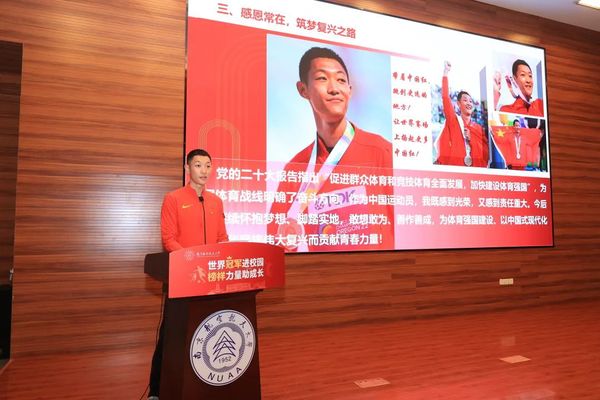 “世界冠军进校园,榜样力量助成长”主题活动的举办是一次生动的思政教育,勉励同学们从世界运动冠军的夺冠故事和成长之路中汲取力量升华自我,珍惜美好时光,追求青春梦想!