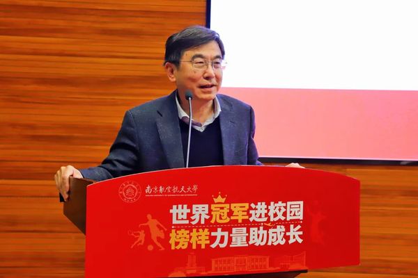 施大宁首先对冠军代表团来到南航参观交流表示热烈欢迎,他简要介绍了南航“为党育英才、为国铸重器”的价值追求,综述了建校70年来的重要成果。70年来,南航为国防科技事业和国民经济发展培养了18万余社会栋梁和工程英才,涌现出24位两院院士以及一大批科技和管理专家,深度参与了我国几乎所有重要航空型号预研、攻关和试验研究,为祖国贡献了若干个“第一”。南航人矢志不渝的报国情怀、百折不饶的拼搏精神、一丝不苟的科学态度,和冠军们艰苦训练、坚持不懈、勇攀巅峰、为国争光的冠军品质一脉相承。相信通过把教育跟体育的相互融合,能够培养出学生更良好的体魄,更健全的人格,更具有积极向上精神。