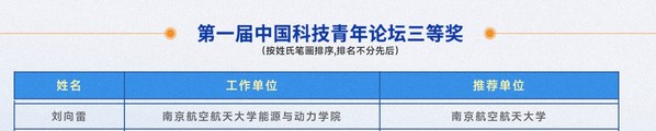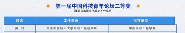 2022年11月21日,中国科协办公厅公布第一届中国科技青年论坛获奖名单,我校航空学院黄锐教授荣获二等奖、能源与动力学院刘向雷教授荣获三等奖,挂靠我校的中国振动工程学会荣获优秀组织单位。