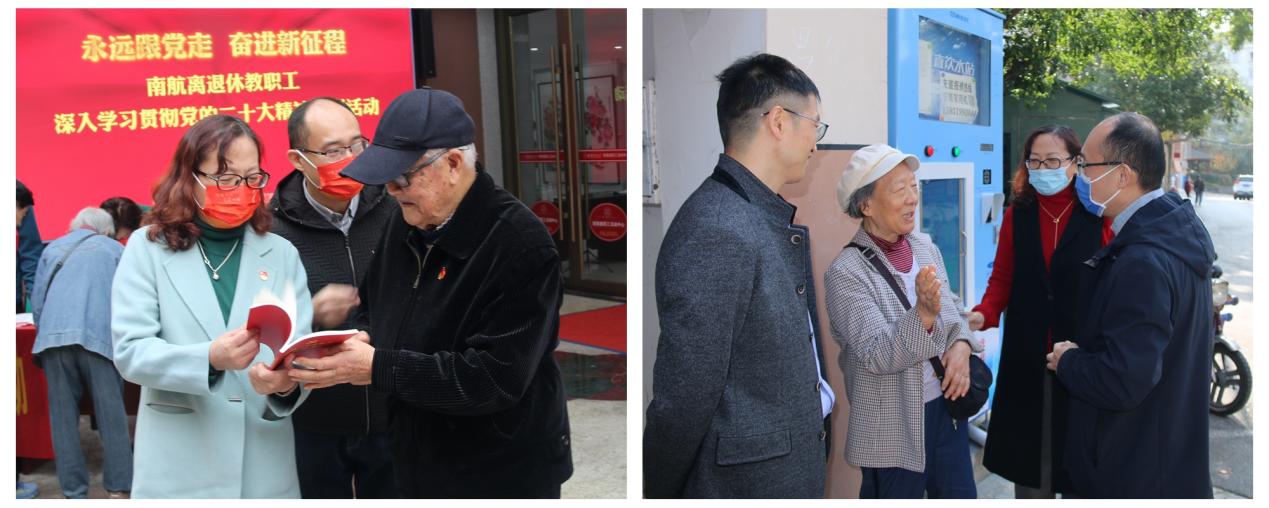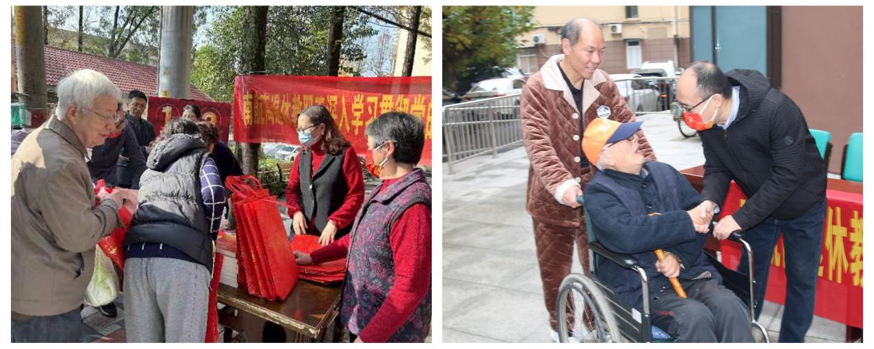 为将党的二十大精神学习宣传贯彻工作推向深入,针对离退休教职工普遍高龄、居住分散、行动不便的实际困难,离退休党工委于11月中下旬深入西苑、李府街、揽翠苑、卫桥等四个家属区,组织学习宣传活动,发放学习辅导资料,宣传大会精神要点,开展学习心得征文,“送学上门”,将党的二十大精神的学习热潮引入社区,带到老同志身边。