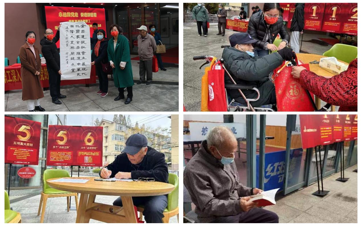 学习宣传活动受到了老同志们的热烈响应,有的老同志提前一个多小时就来到了活动现场,有的坚持自己拄拐杖、坐轮椅亲自来,有的托人送来自己的书法作品表达心意,有的在活动现场写留言、表真情,还有的刚拿到书就在一旁坐下,迫不及待地读了起来。离退休党支部的书记们对此次活动给予了大力支持,提前在支部党员中广为宣传。活动当天,支部书记们也来到现场,协助做好学习资料发放和征文动员工作。“以前经常是我们支委挨家挨户发放材料,大家住得很分散,发起来很麻烦,费时费力。你们这种方式好!也给大家提供了一个交流的机会。”“你们太贴心了,直接送书过来,我们不怕掉队了。”老党员纷纷点赞活动,表示一定会加强学习,积极发挥自身余热,把学习成果落到实处,落实到行动中去。