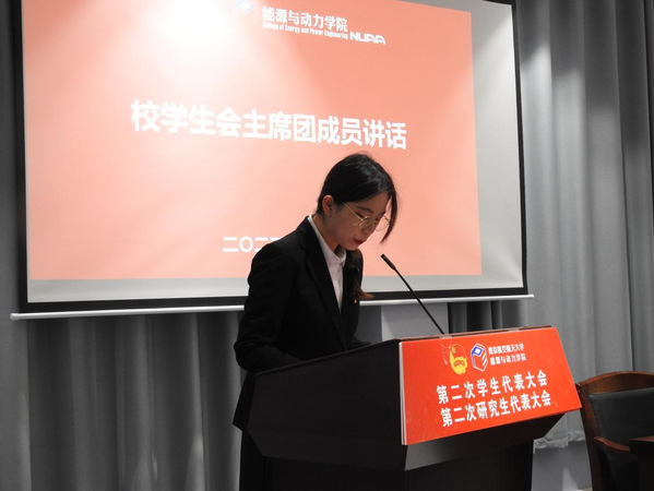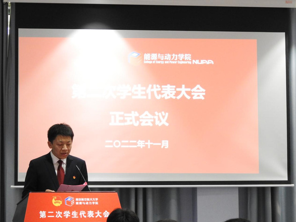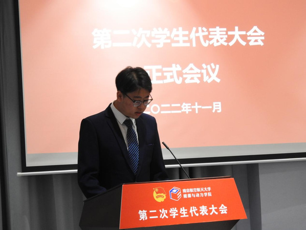 会上,杨少川代表学院第一届学生会委员会作了题为《埋头苦干 奋勇前进 团结全院同学为建设一流的能源与动力学院贡献青春力量》的工作报告,李桐代表学院第一届研究生会委员会作了题为《奋进新征程 启航新时代 团结广大研究生为建设航空航天民航特色鲜明的高水平研究型大学贡献力量》的工作报告。