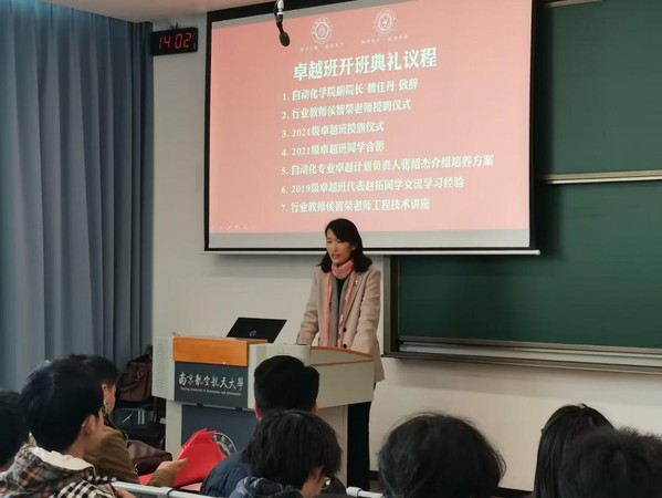 2022年11月24日,自动化学院2021级自动化专业卓越工程师班开班典礼在天目湖校区T1115教室举行。自动化学院副院长魏佳丹、行业教师侯智荣、自动控制系副主任唐超颖、卓越计划负责人张绍杰,2021级和2019级、2020级卓越工程师班全体同学现场和在线参加了开班典礼,2022级自动化专业同学观摩了开班典礼。开班典礼由唐超颖主持。