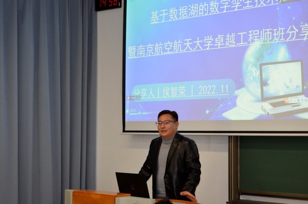 开班典礼结束后,侯智荣为同学们开设了题为“基于数据湖的数字孪生技术”的工程技术讲座。侯智荣通过将抽象概念与实例相结合,向同学们讲解了数字孪生、人工智能、数据湖等概念,介绍了数字孪生在不同功能实现、不同场景运用下具有的业务价值,以及基于数据湖的数字孪生解决方案以及方案实施的重点与难点。最后,侯智荣结合自身丰富的工程工作经历,向同学们提出了宝贵的发展建议,鼓励同学们努力成为一名卓越的工程师。