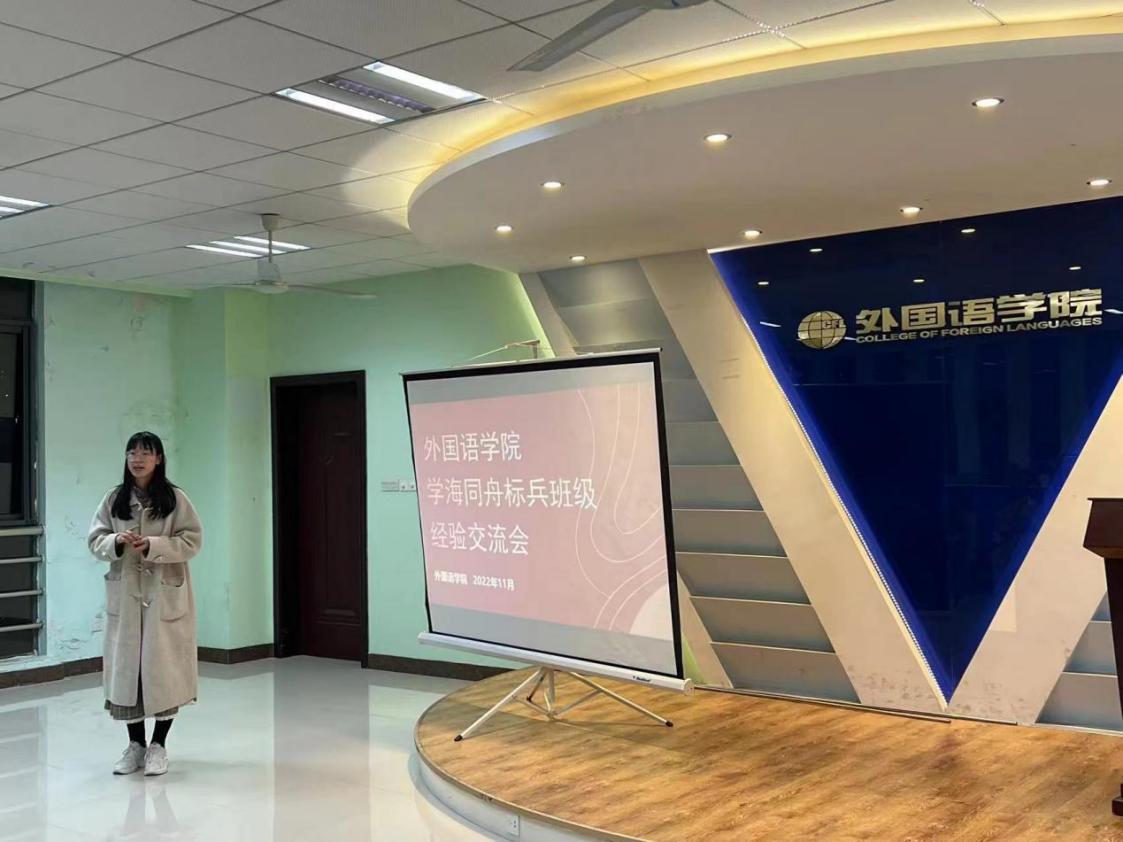 为更好助力班级学风建设,11月25日,学风建设“学海同舟”标兵班级经验交流会在外国语学院大学生活动室召开。辅导员赵瑜瑶、大一至大三各班学习委员和班长参与了本次交流会,标兵班级1220103班、1221103班学习委员做经验分享。