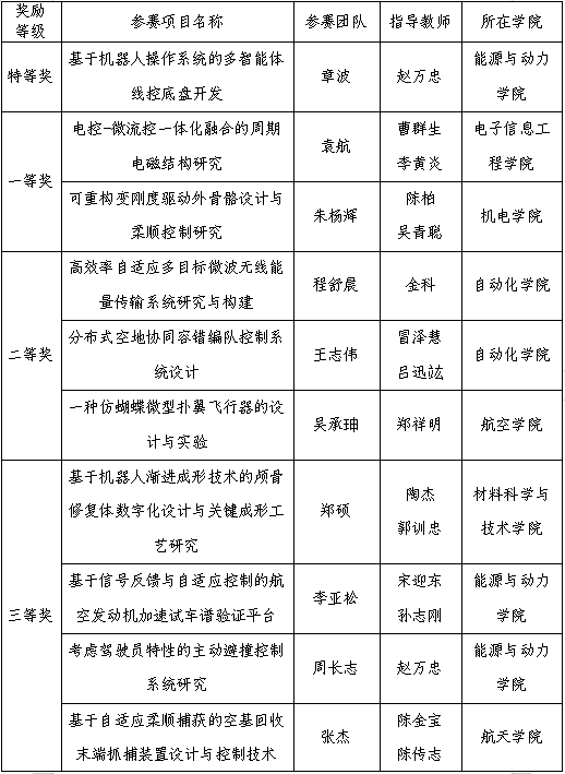 附件:第十一届“天宫杯”研究生创新实验竞赛获奖名单
