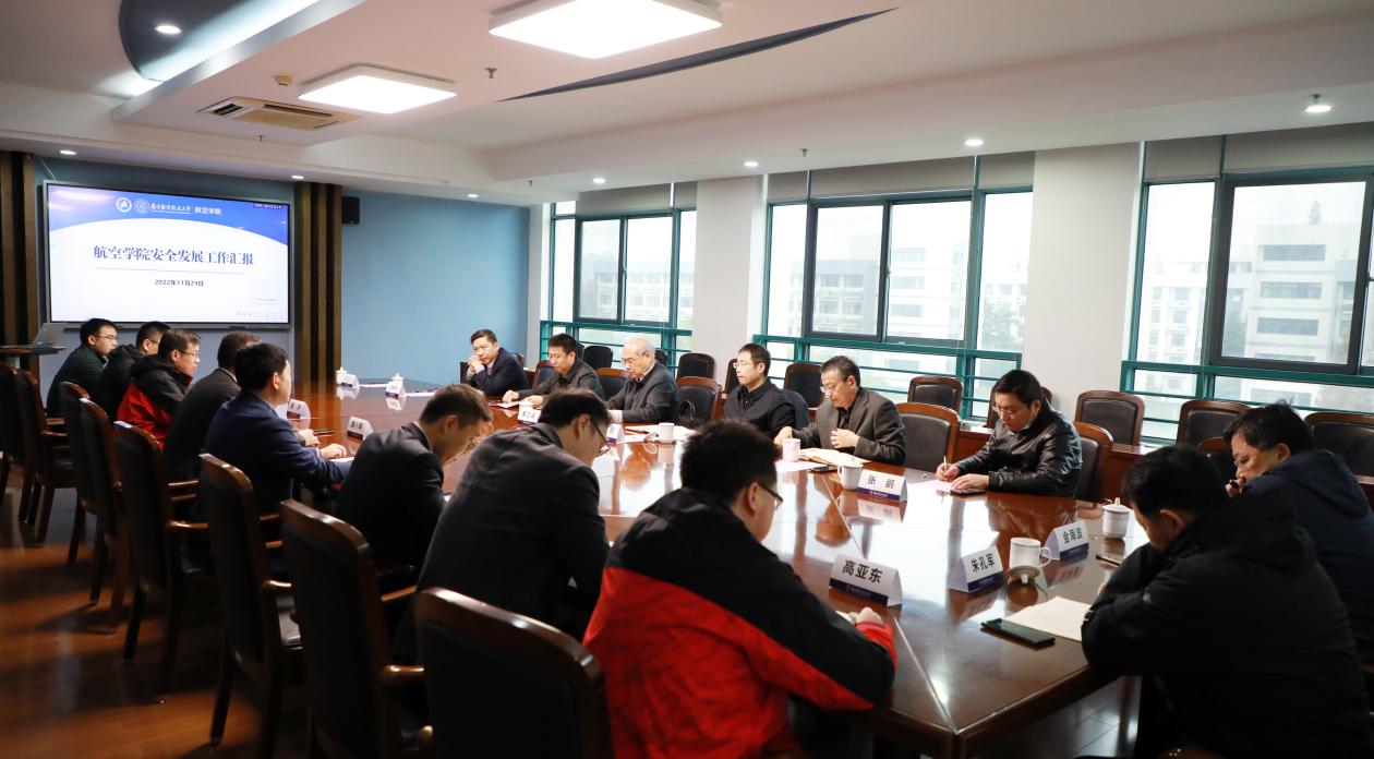 11月29日上午,航空学院在明故宫校区A18号楼511会议室召开安全发展工作检查汇报会。会上,校党委常委、副校长黄志球,校党委副书记、纪委书记杭育新以及纪委、国资处、保密处、保卫处的主要领导莅临学院检查指导安全工作。学院领导班子和相关系所、实验室负责人参加了汇报会。会议由杭育新主持。
