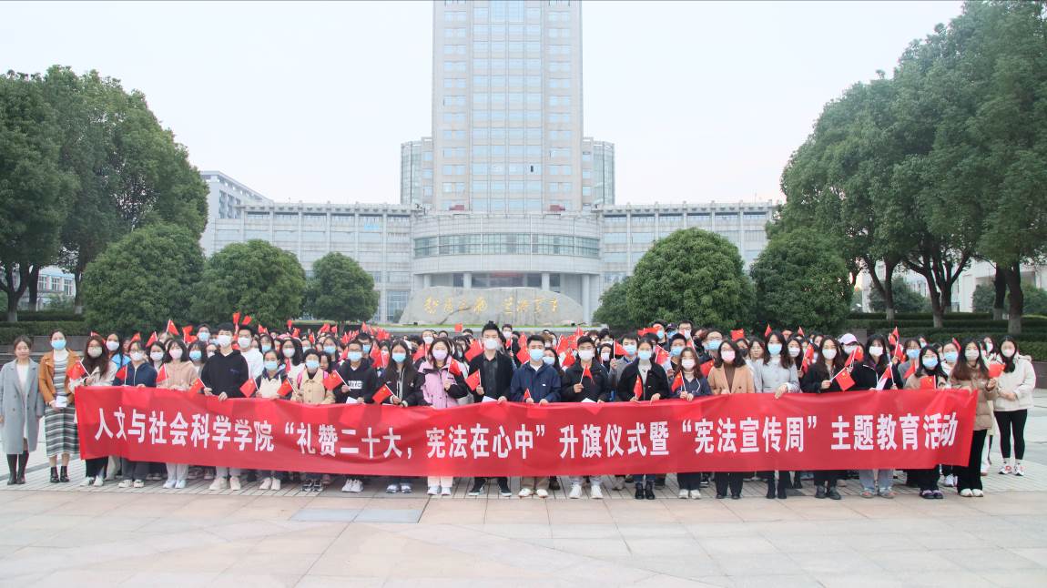 为认真学习贯彻党的二十大精神,深入学习贯彻习近平法治思想,弘扬宪法精神,维护宪法权威,在现行宪法颁布实施40周年纪念日即将来临之际,11月28日清晨,人文与社会科学学院举办 “礼赞二十大 宪法在心中”升旗仪式暨“宪法宣传周”主题教育活动。人文与社会科学学院党委副书记刘思辰、全体专兼职辅导员及2022级新生、全体党员、发展对象、入党积极分子参与本次活动。