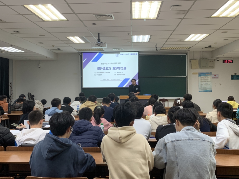 为提升新生的适应能力,激发学生学习的主动性与积极性,11月24日,数学学院在10202教室开展2022级本科生“提升适应力,奠梦想之基”公开月讲评,月讲评由学院2022级辅导员陈越主讲,全体2022级学生参加。