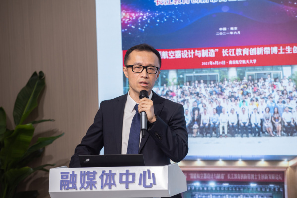 施大宁宣读了创新周系列活动安排。随后,单忠德、韩叶祥、施大宁、刘高群、杨伟锋、王晖共同启动南京航空航天大学第二届科教产教融合创新周。