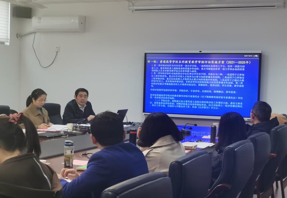 会上,徐以中介绍了国家启动新一轮本科教学评估的背景及《教育部关于印发<普通高等学校本科教育教学审核评估实施方案>的通知》、《普通高等学校本科教育教学审核评估实施方案(2021—2025年)》等相关文件,解读了学校本科教学规范交叉检查反馈报告及关于落实本科教学规范交叉检查整改工作的通知,提出要加强教师政策学习和业务知识学习,指出现阶段的总任务是贯彻以学生发展为中心的理念,强化信息化技术与教育教学深度融合,按照创新性、开放性要求,推动课程教学模式变革。