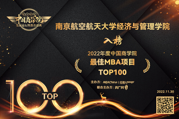 南京航空航天大学经济与管理学院MBA项目入榜“中国商学院最佳MBA项目TOP100”。