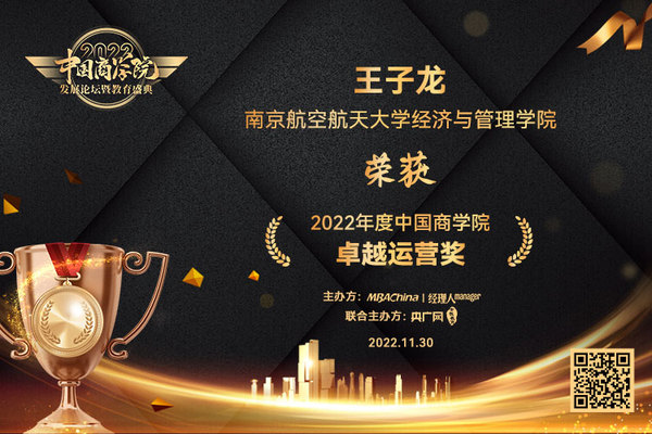 南京航空航天大学经济与管理学院副院长王子龙教授荣膺“中国商学院卓越运营奖”。