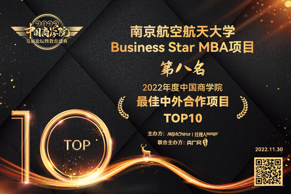 南京航空航天大学Business Star MBA项目入榜“中国商学院最佳中外合作项目TOP10”第八名。
