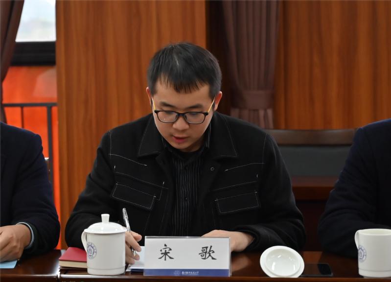 宋歌以法治思想与教育紧密结合为主题领学了党的二十大报告部分内容,希望在溧阳市公安局的支持下,共同加强学生普法网络平台与社会实践建设,推动法治教育与日常管理相融合,潜移默化提升师生法治素养。